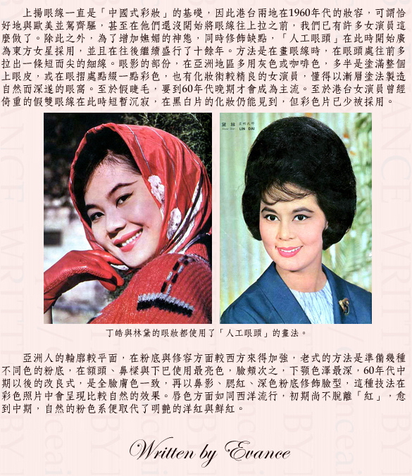 蘇菲亞羅蘭 (Sophia Loren)、碧姬芭杜 (Brigitte Bardot)、仙杜拉蒂 (Sandra Dee)、娜妲麗華 (Natalie Wood)、薇娜莉西 (Virna Lisi)、安瑪格麗特 (Ann Margret)、杜娟、葉楓、白冰、夷光、李菁、丁皓、林黛。