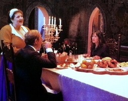 夫婦甫抵古堡即因若干詭異之事受驚,為此猶疑,適時女爵前來接待入住。廚師約瑟芬發覺糧食僅剩零星蔬果,女爵卻仍以高規格要求之。愛黛蕾德沐浴時遭古堡中鬼魂亞契伯公爵及其隨從安古斯調戲,卻誤認卡密羅所為,將其數落。亞契伯與安古斯前往旅店張羅食物,順道搗亂,使顧客吵成一團,泰倫斯介入調停,分身乏術。亞契伯主從則趁機將一桌佳餚送往城堡。