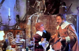 左:古堡中的第一次晚餐,女廚露琪安娜圖莉娜送上食物,餐桌對面分別為文森佐克洛奇帝與莉莉拉蒂。 右:喬林諾克利維洛與雷索蒙特南尼在他們的地下實驗室。
