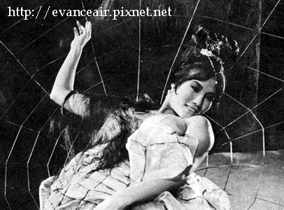 左圖:于倩在《盤絲洞》(1967)飾演紅蜘蛛。 右圖:在《斷魂谷》(1968)中,于倩將陳鴻烈母親殺害,卻佯稱將之禁錮,陳鴻烈遂脅迫于倩供出藏匿其母的地點。