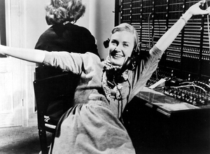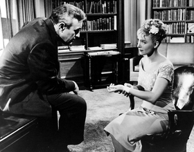 左圖:白夏娃出院後,不願拖累家人而決定與丈夫分居,面對茫然未來,勞夫給予鼓勵。 右圖:黑夏娃在白夏娃從事接線工作時出現,任意而為。