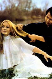 左圖:大衛 (皮耶保羅卡邦尼)將法萊莉亞視作一性物件,夜間持手電筒朝妻子照射。 右圖:《愛娃》原聲帶封面,左為芭芭拉寶釵明艷的造型,右為她詮釋病患的素顏演出。