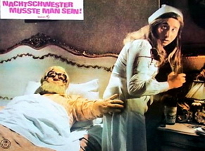 實際上,《夜護士》全片只出現了一次婚外性行為,且所有的性都在鏡頭外發生。老是有非份之想的男主人見到妻子睡姿竟重燃舊慾(真有這樣的事?) 雖有個一直慫恿自己風流的老爸,卡洛倒不太領情,即便到了樓下的少婦面前仍舊成了「easy boy」,末了依然沒有真正發生關係,甚至他與安琪拉的那一次纏綿也給打斷。雖未明說,倒似在暗示觀者一種特定的價值。順帶一提,克莉門蒂演那位丈夫總在外拳擊,因而垂涎鄰居的少婦。這一部份本與劇情全然無關,拜其脫離現實的情節、「無腦」的對白與襯樂所賜,竟然異常逗趣,勝過其他由實力男丑搞笑的段落。